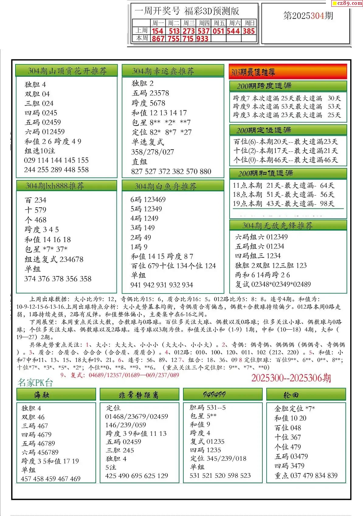 2025305期3D图谜汇总(一)