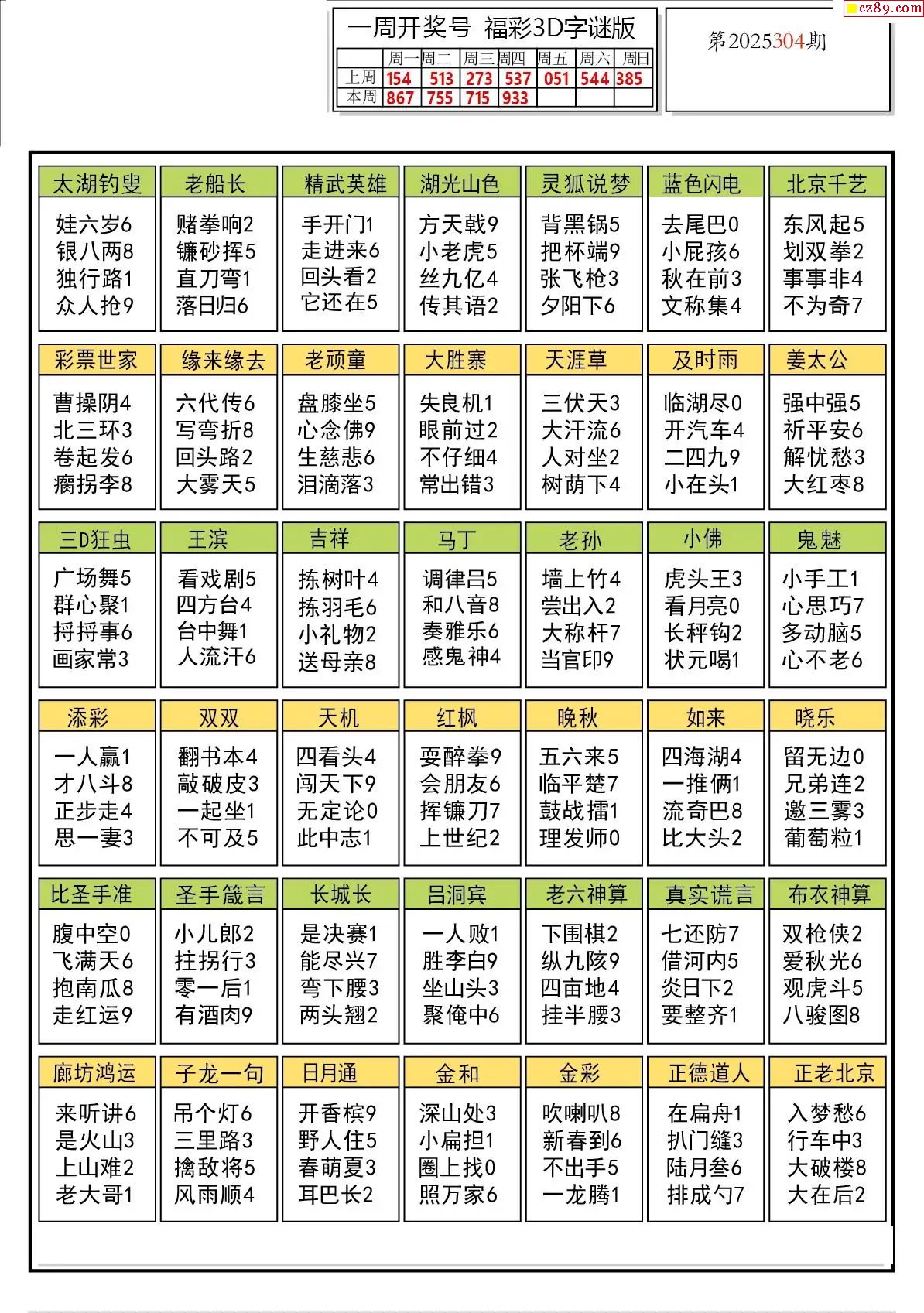 2025305期3d字谜图谜总汇