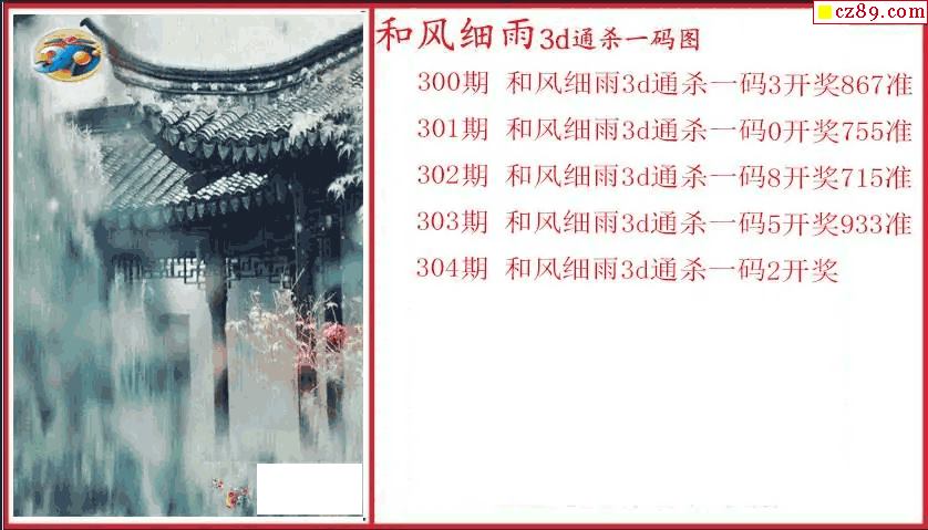 > 25年304期3d 和风细雨通杀一码图