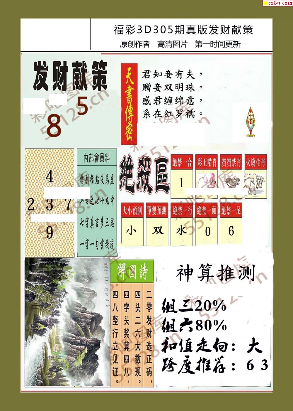 > 发财献策25年305期福彩3d字画报