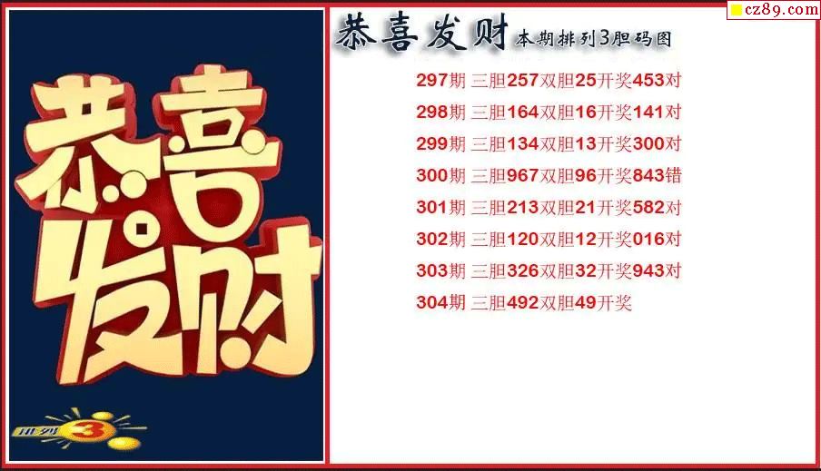 > 2025304期P3恭喜发财胆码图