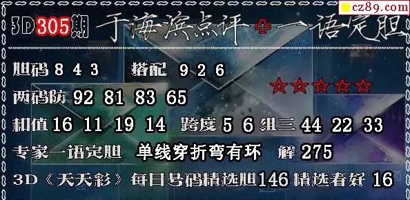 3D 《天天彩》每日号码精选胆146 精选看好16