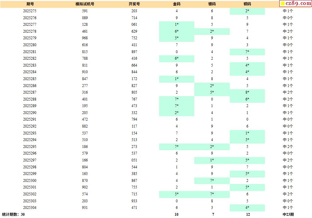 25年305期福彩3D彩神通关注码历史记录