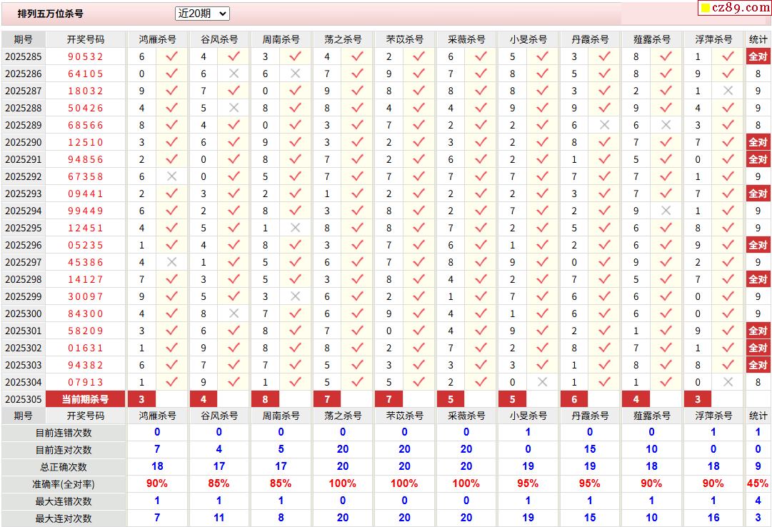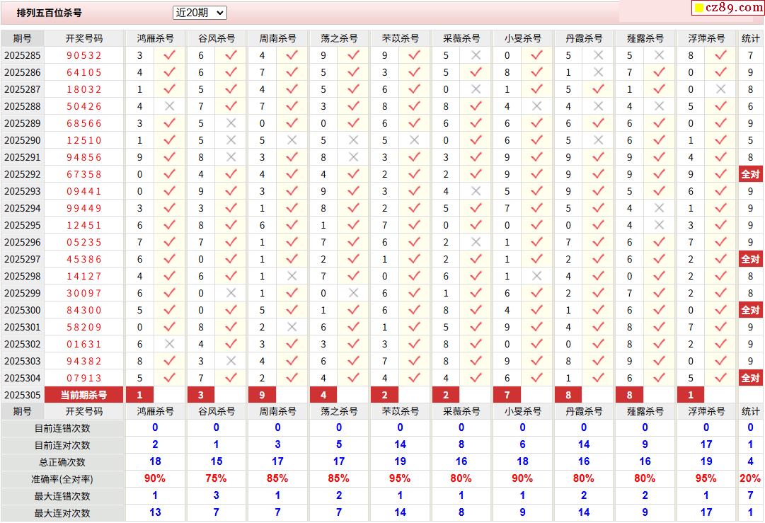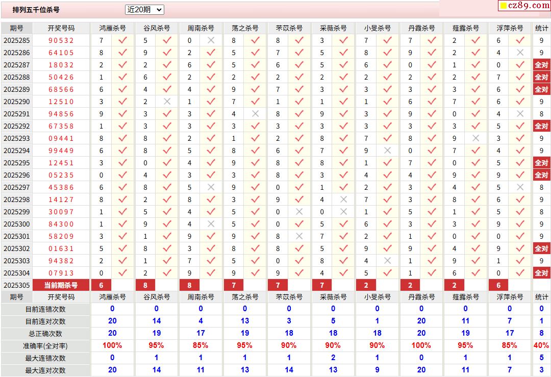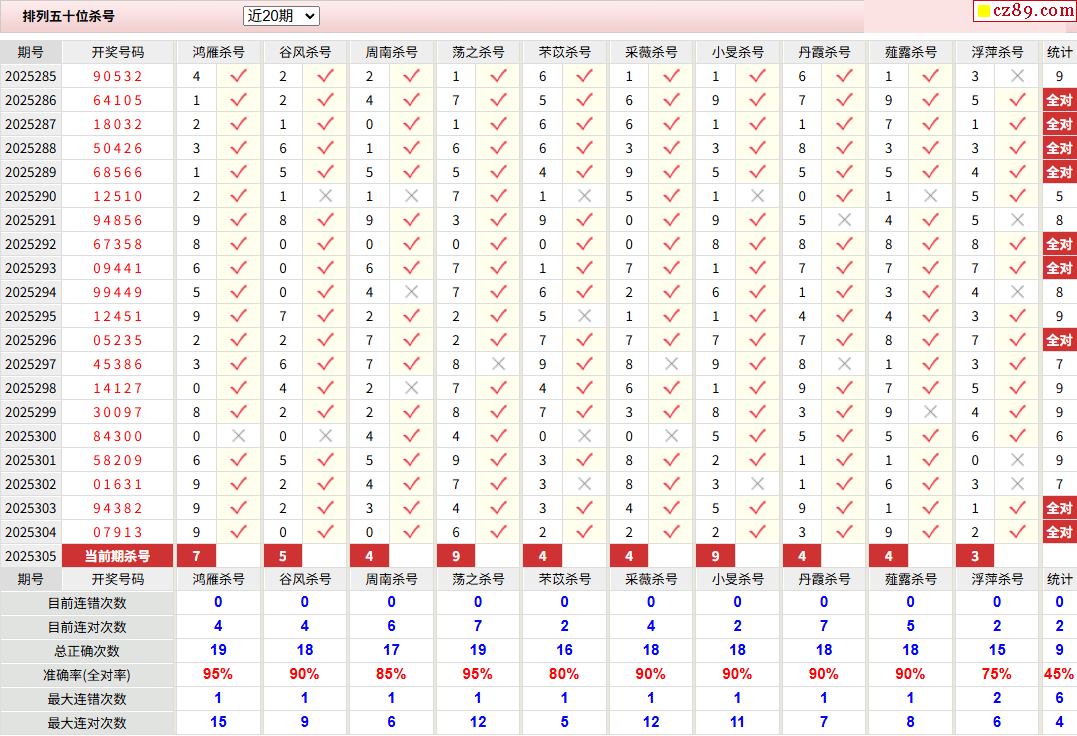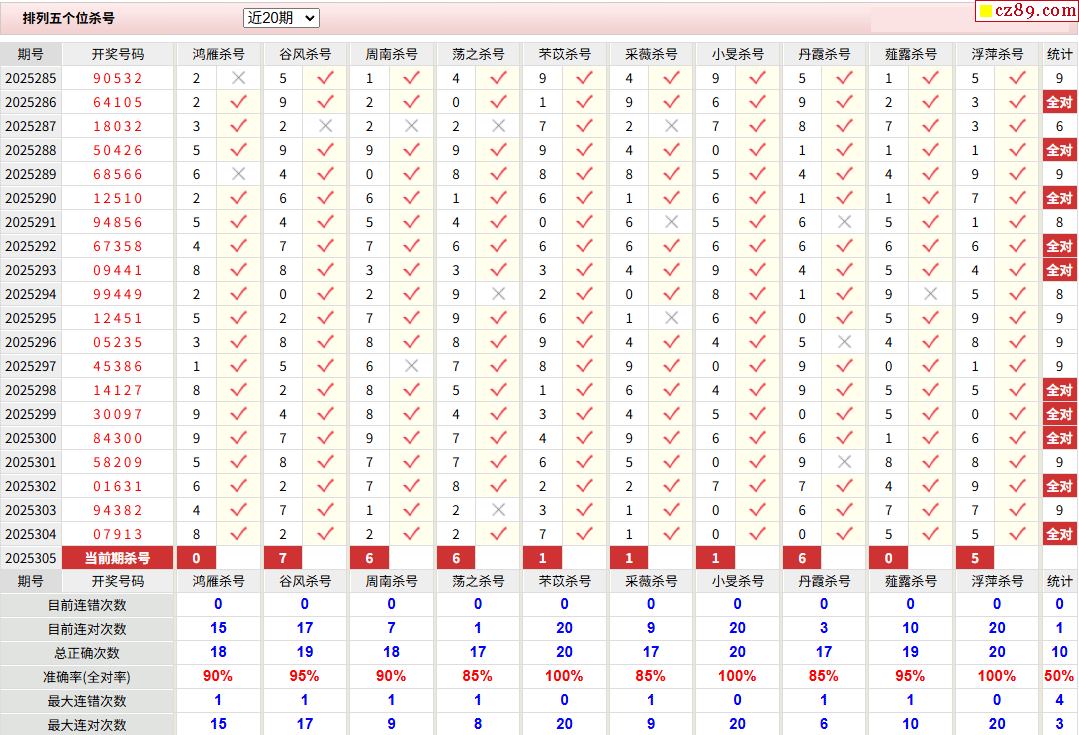 > 305期彩票专家体彩P5杀号推荐图表