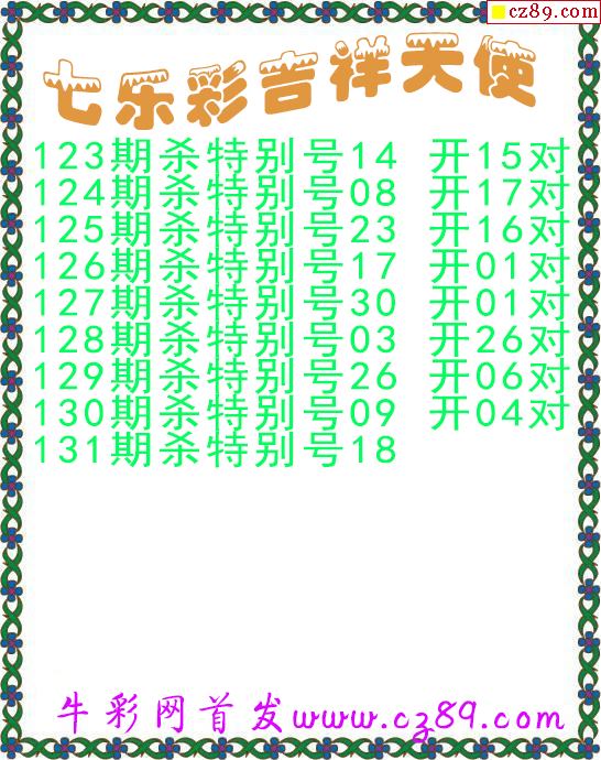 七乐彩2025131期吉祥天使图谜