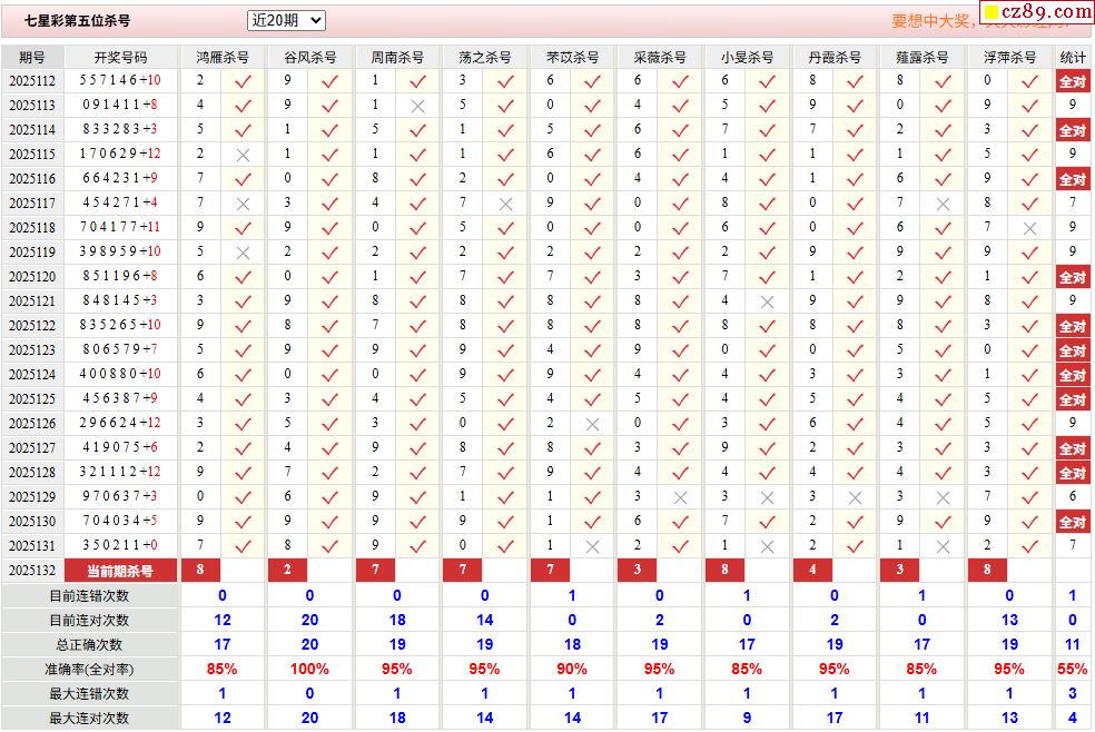 七星彩132期 彩宝贝专家直选杀号预测图表